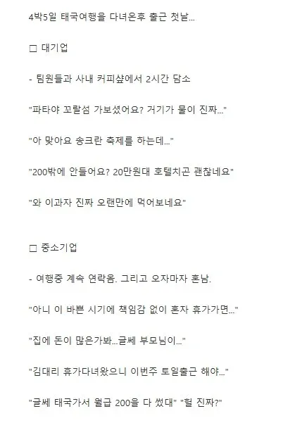 태국 4박5일여행 다녀온후 대기업 vs ㅈ소