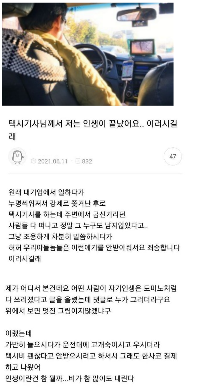 인생 끝났다는 택시 기사님