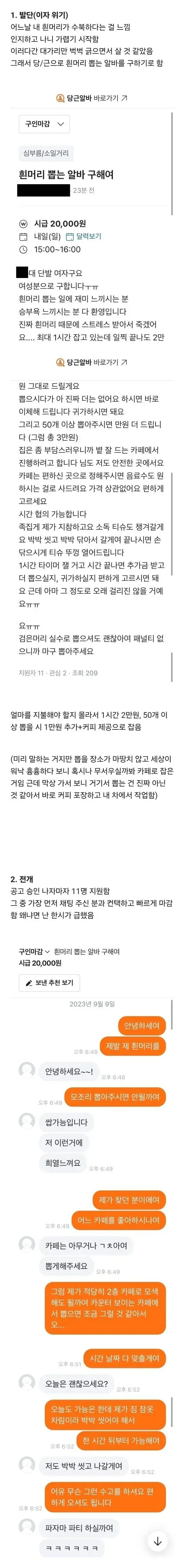 흰머리 뽑는 알바 채용 후기