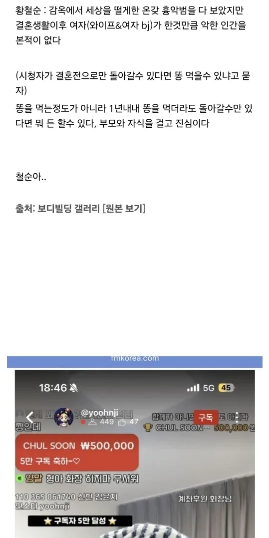 여자랑 결혼할바에 똥 먹겠다던 황철순 근황